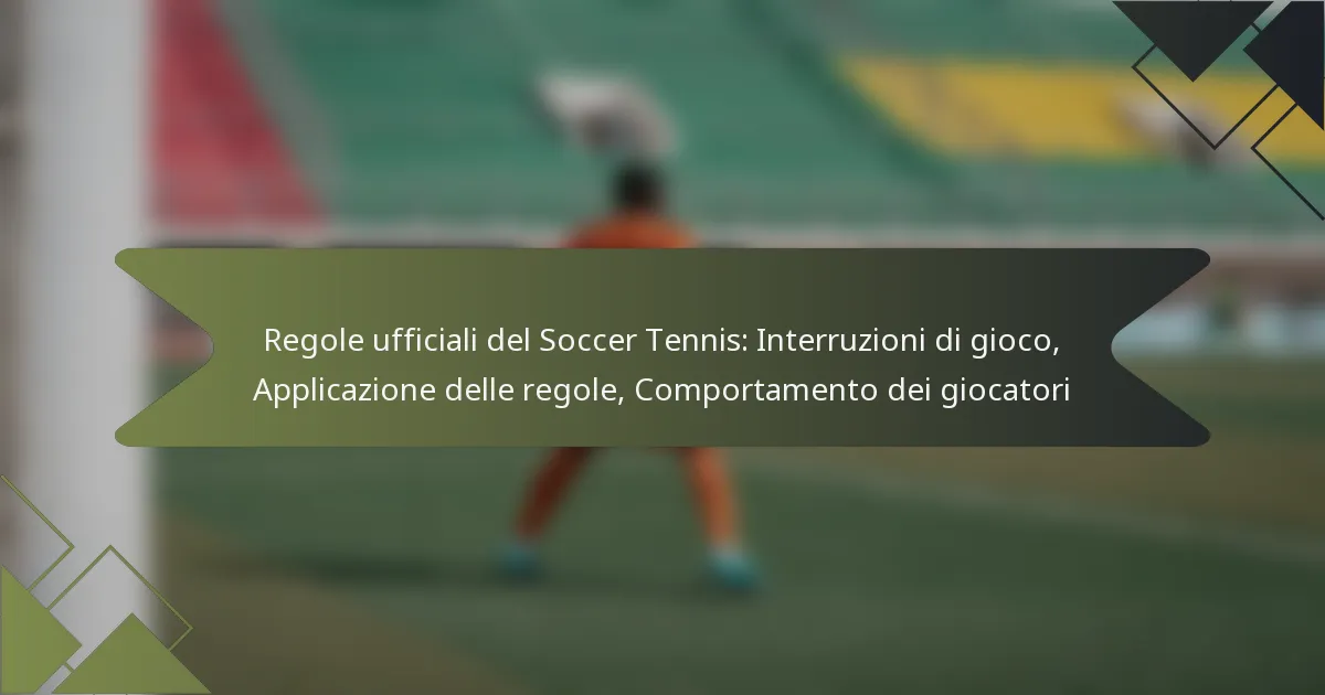 Le interruzioni di gioco nel tennis calcistico sono definite come qualsiasi pausa nel gioco che influisce sul flusso della partita. Queste interruzioni possono derivare da varie situazioni, tra cui infortuni, condizioni meteorologiche o controversie, e sono governate da protocolli specifici per garantire equità e sicurezza per tutti i giocatori.